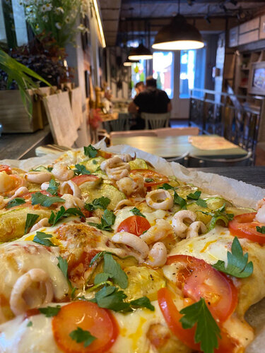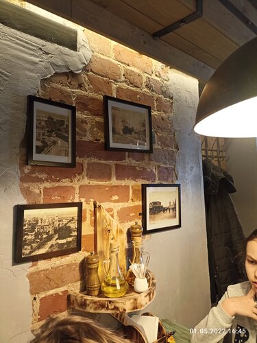 Хочу поделиться впечатлением от посещения этого ресторанчика.Расположен в центре старой Коломны, рядом с различными интересными локациями. Внутреннее оформление достаточно лаконичное, но очень уютное. Очень вежливый и доброжелательный персонал. Меню достаточно интересное. Та часть, которая относится к " рёбрам "- это русская кухня. Т. е. "плотно пообедать и конкретно закусить".Для любителей - пицца, панини, фокачча. Это уже другая история. Но можно совместить. Рёбрышки - это, конечно, что-то. Очень вкусно и сытно. На гарнир заказывали печёный картофель и соления. Всё очень понравилось. Теперь о десерте. Грушевый тарт с шариком мороженого -мягкий, сочный. нежный. Суперский десерт. Одного посещения " Ребёрной" нам оказалось мало, повторили через неделю. Теперь решили начать с борща😅Борщец не разочаровал, плюс " комплимент "- смалец с чесноком, зеленью и гренки. Что ещё надо для плотного обеда? Теперь о ценнике. Ценник приемлемый. Душевно" посидеть "- примерно 1500-2000р.с человека. Счёта за еду и напитки разные. При заказе некоторых блюд подаётся " стопарик " от заведения "типа " блюдо под " мухой "".🤗Я думаю, что в этот ресторан зайдем ещё. И не раз. Спокойно, уютно, душевно, вкусно, чисто. И цены адекватные. Буду рекомендовать друзьям. А заведению - добра и процветания.