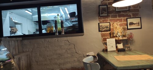 Гуляли семьёй по старой Коломне, знали про этот ресторан, заранее заказали четыре вида ребер на пробу, брали с собой,чтоб дома откушать, брали без гарнира, дома всей большой семьёй провели дегустацию с вином и коньяком, больше всего всем понравились ребра под горчичным соусом,второе место под пивным соусом, а третье под винным. Вкусно, достойно по цене и качеству, обслуживание хорошее, внимательное, но не атмосферно,все простенько, скучно,не интересно, нет такого,чтоб было желание сделать селфи и снять видео и поделиться с близкими, до этого за неделю брали рыбное блюдо из тунца, очень достойно и респект шефу,брали с собой на ужин дома, официанту респект, пока ждали блюда, уговорил на чай и кофе с пироженками, не навязчиво, но чай, кофе и пироженки были прекрасны. Моё мнение отличается от других, никого не хочу обидеть,спасибо. Гуляйте и отдыхайте в Коломне, прекрасный отдых для всей семьи и влюбленных, у каждого свой вкус и цвет. Спасибо.